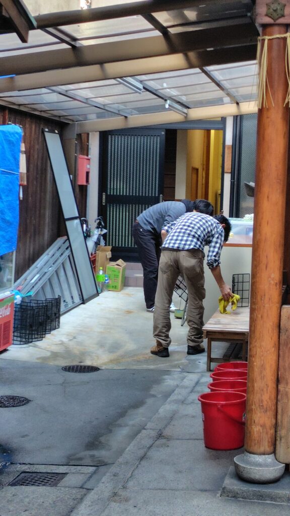 毎年祇園祭へ奉仕できることへの感謝の気持ちを込めて、徹底的に掃除をしました。今年一年の汚れもこれでスッキリです!